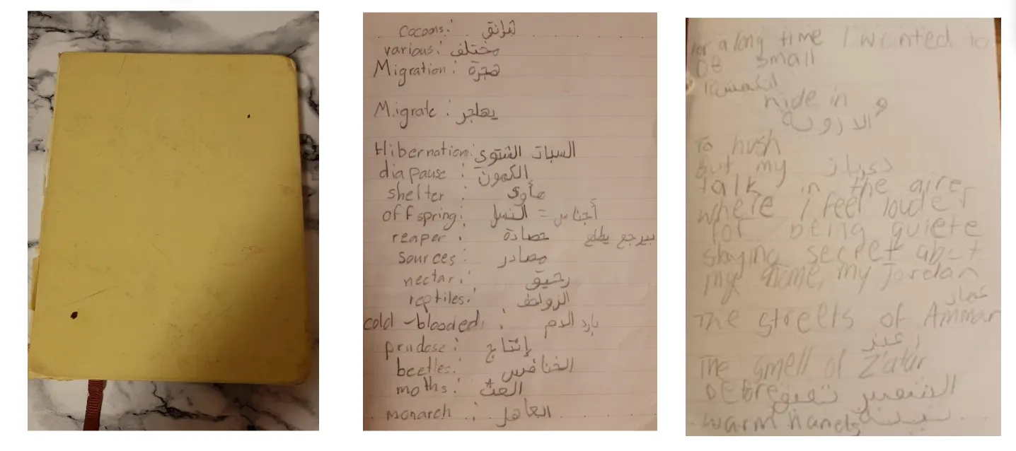 That night, I rewrote my poem in my journal without my dictionary. I let the words flow–English when I could, Arabic when I couldn't, and scribbles or sketches when no language sufficed.