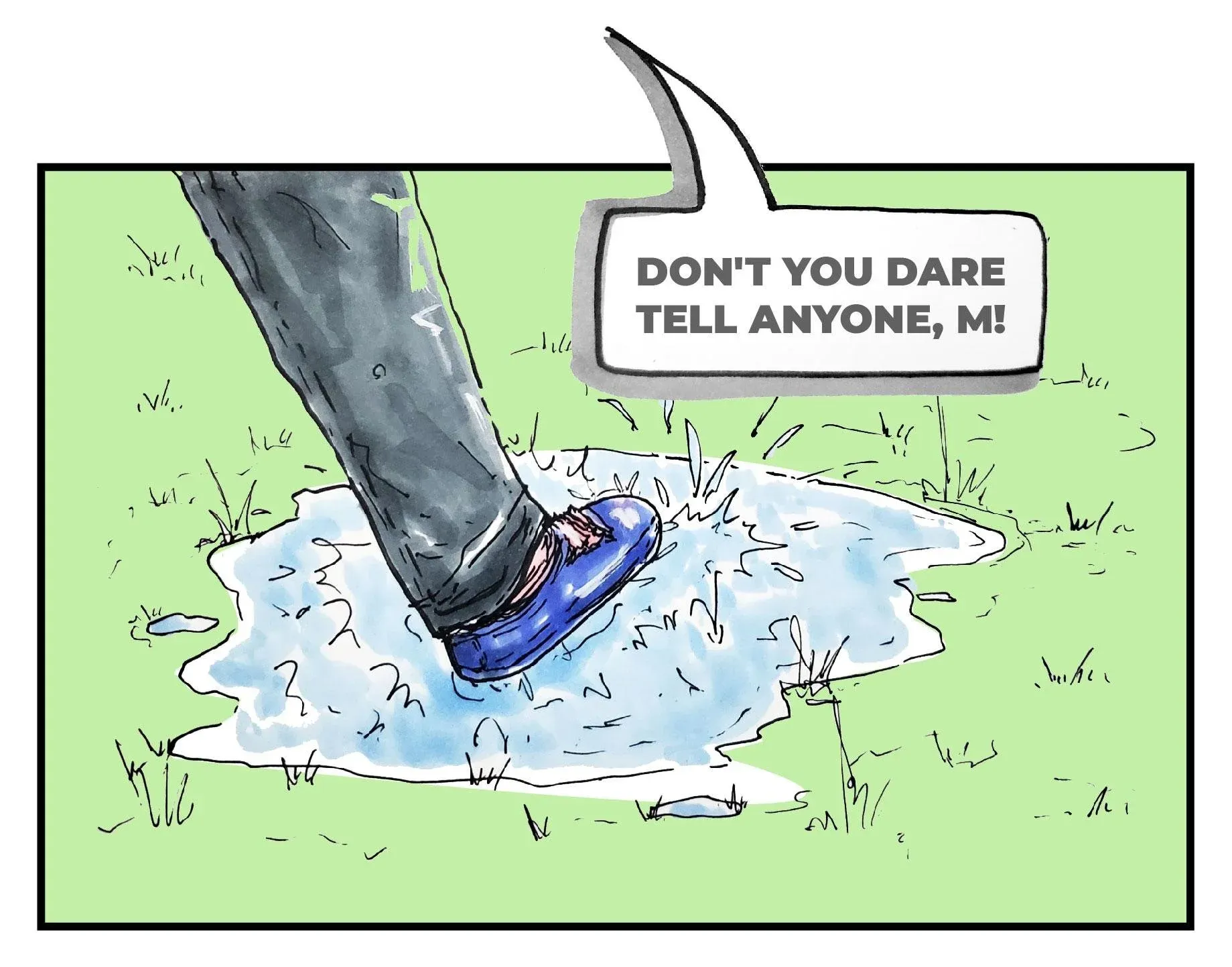 Still flustered, I kept walking – and then stepped directly into a puddle. Cold water seeped into my shoe and sock, but I pretended as if nothing had happened and kept moving like my foot wasn’t soaked. I did not want anyone to see my humiliation, especially M.